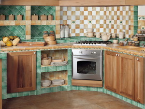 Керамическую плитка хорошо сочетается с натуральным деревом: плитку размещают в рабочей зоне, а остальной пол оставляют деревянным. В этом варианте есть только одна трудность: толщина плитки и деревянных покрытий должна совпасть. Модным элементом является отделка фрагментов стены (лесенкой, каскадом или рамкой). Самые популярные в классическом интерьере кухни теплые коричневые и бежевые оттенки под дерево, а в кухнях в стиле минимализма чаще применяют серые или черные цвета.