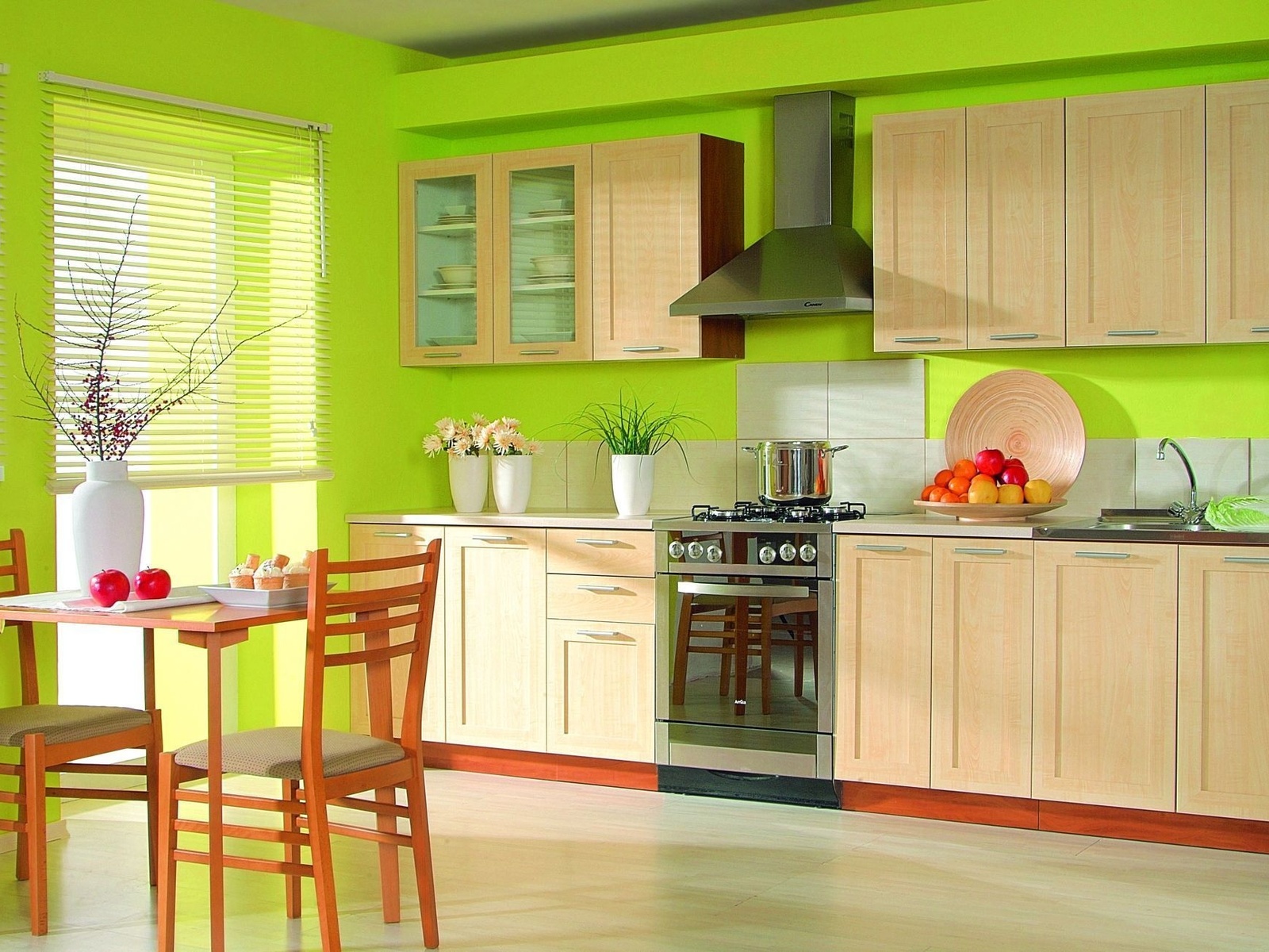 Начнём с пола, поскольку по степени соприкосновения он выступает наиболее используемой поверхностью. Каждый, кто пребывает в помещении, каждую секунду находится с ним в контакте, что приводит к быстрому загрязнению напольного покрытия. В итоге его приходится часто мыть. Из этой необходимости вытекает следующий факт: покрытие пола должно быть водостойким и удобным в уборке. Такими качествами характеризуются все из нижеперечисленных материалов, при этом каждый из них обладает своими преимуществами и недостатками. После выбора напольного покрытия целесообразно обратить внимание на отделочные материалы для потолка, которые в своем развитии совершили огромный шаг. После того как была произведена установка вытяжки, можно приступить к подбору различных потолочных плит, панелей и прочих подвесных конструкций. Наиболее удачной новинкой считаются натяжные потолки, изготовленные из сверхпрочного винила. Данные изделия обладают настолько высокой прочностью, что способны выдержать давление более 100 литров воды, оказываемое на один квадратный метр. А после удаления такой нагрузки полы полностью восстанавливаются.